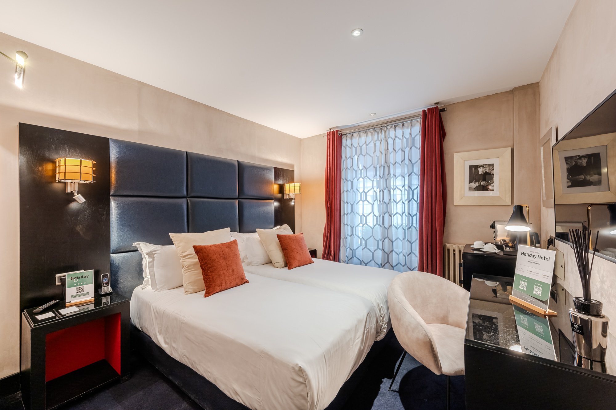 Le camere Hotiday sono ospitate all’interno di Hotel selezionati e sono pensate per soddisfare i desideri dei viaggiatori moderni. L’Hotiday Room Collection a Parigi è un’area di camere selezionate in un elegante hotel 4 stelle nel cuore di Parigi, a 350 metri dall'iconico Arco di Trionfo. L'hotel dispone di una palestra disponibile gratuitamente per gli ospiti e di servizi benessere a pagamento su richiesta. È inoltre possibile gustare una tradizionale colazione a buffet.