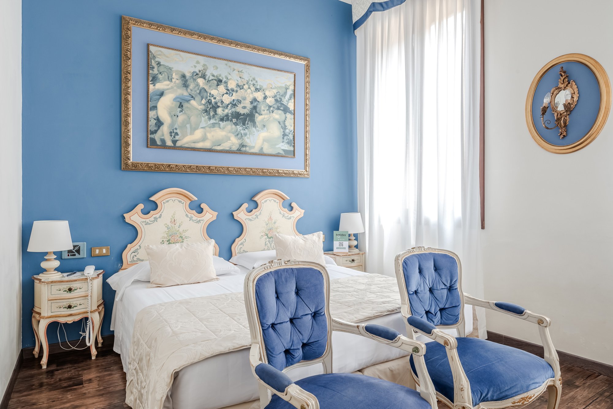 Le camere Hotiday sono ospitate all’interno di Hotel selezionati e sono pensate per soddisfare i desideri dei viaggiatori moderni. L’Hotiday Room Collection a Venezia è un’area di camere selezionate in un raffinato hotel 4 stelle, situato nel cuore di Venezia, nel sestiere di Cannaregio. L'hotel dispone di un giardino interno, una sala business ideale per eventi aziendali e di servizi benessere prenotabili a pagamento.